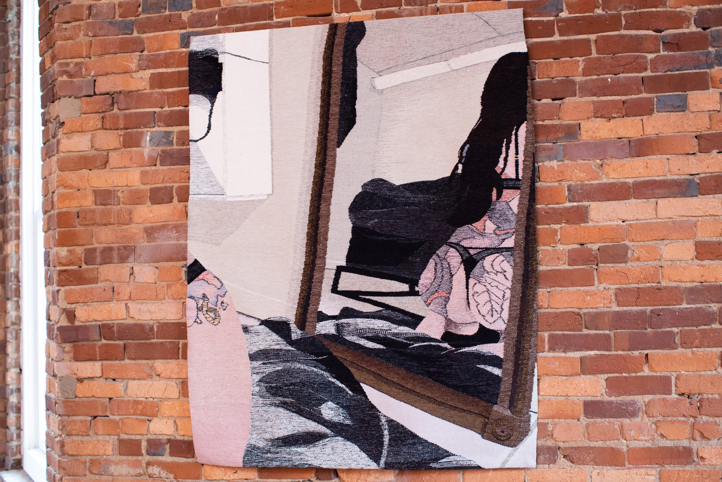 Erin M. Riley, "Reflections 6," 2019. Wool and cotton tapestry, 48 x 62 inches